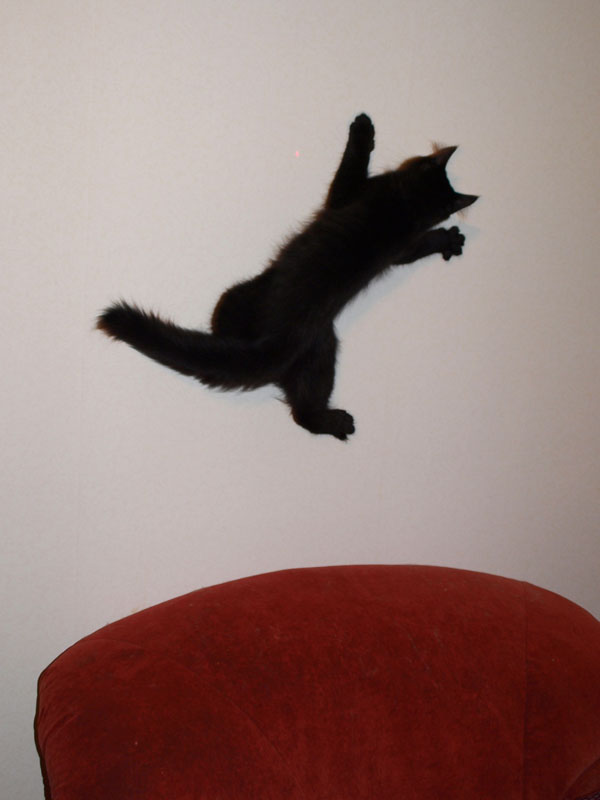 Ja tässä mallia kaikille niille, jotka väittävät, että pennut tai nuoret kissat riekkuvat. Ei pidä paikkaansa, ne lentävät: